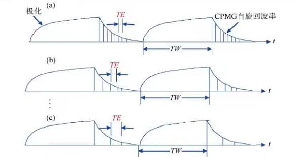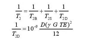 在梯度场下,如果采用相同TW和不同TE进行数据采集(如图2所示),此时测量的横向弛豫时间内就包括流体扩散系数信息。