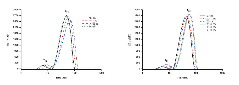 图2 不同种及不同浓度胶体T2弛豫时间图谱