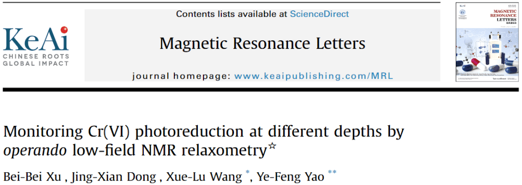 Bei-Bei Xu , Jing-Xian Dong, et al. Monitoring Cr(VI) photoreduction at different depths by operando low-field NMR relaxometry [J]. Magnetic Resonance Letters.
