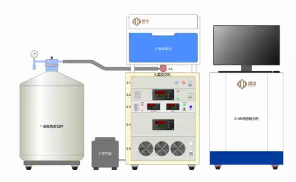 原位变温低场核磁共振系统是在常规低场核磁共振系统上加配了变温探头、控温硬件以及控温软件。系统样机如下图: